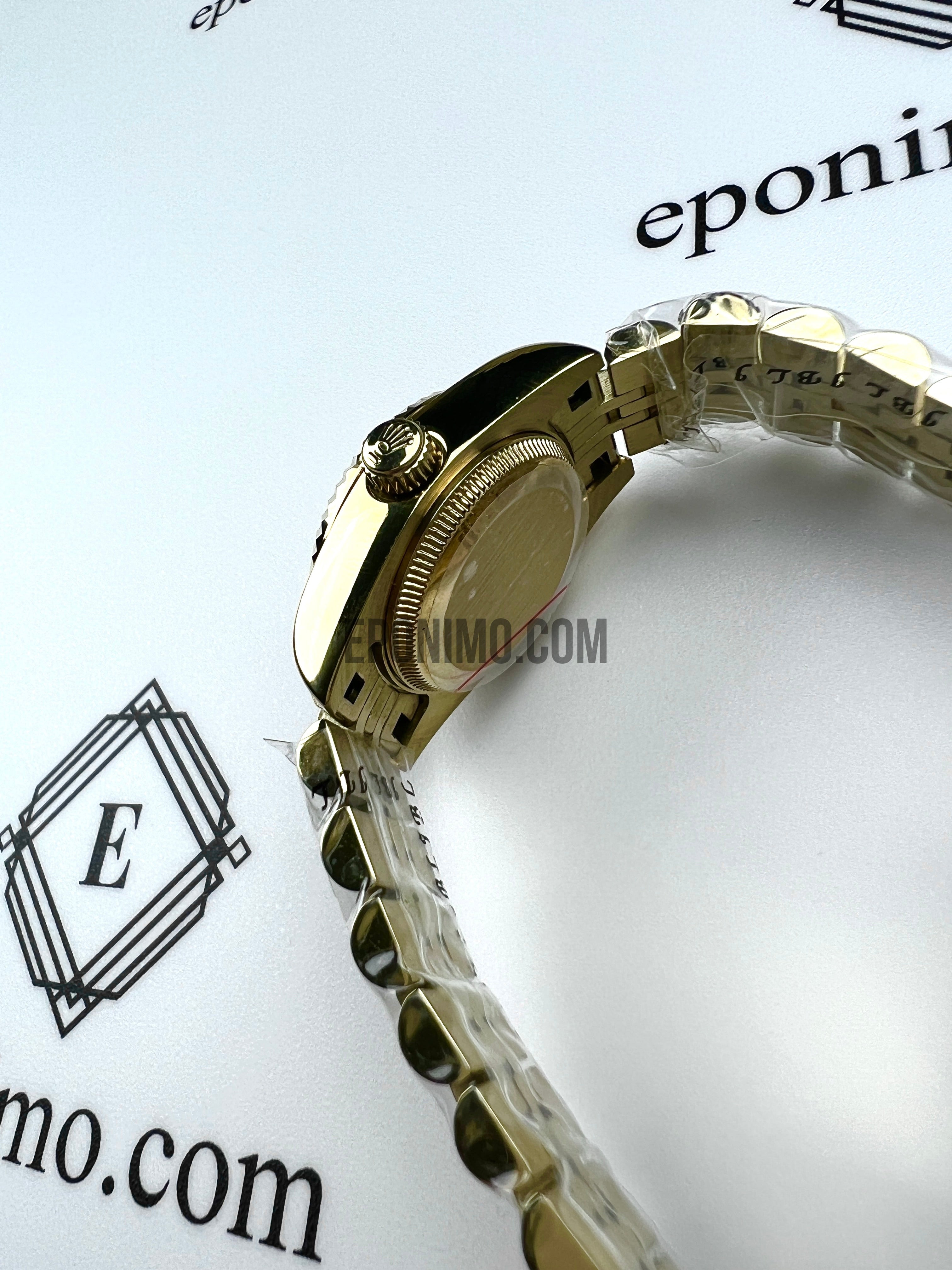 Ανοξείδωτο ατσάλι 904L, αυλακωμένη (fluted bezel), χρυσό χρώμα |