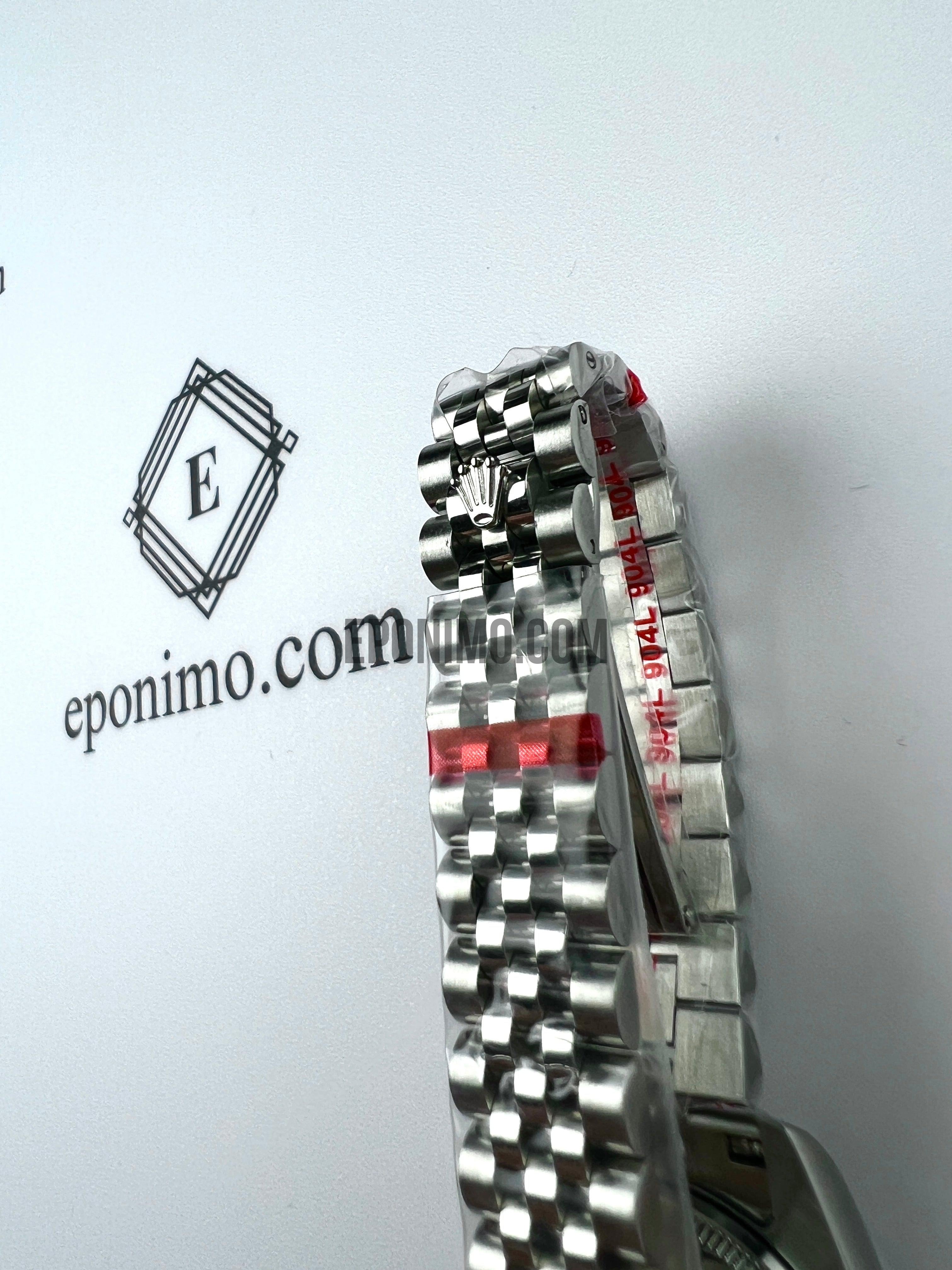 Με 31 χιλιοστά διάμετρο, γυναικείο, κατασκευασμένο εξ'ολοκλήρου από συμπαγές ανοξείδωτο ατσάλι. Φοράει αντιχαρακτικό κρύσταλλο ζαφειρίου και αυτόματο μηχανισμό. Αδιάβροχο.