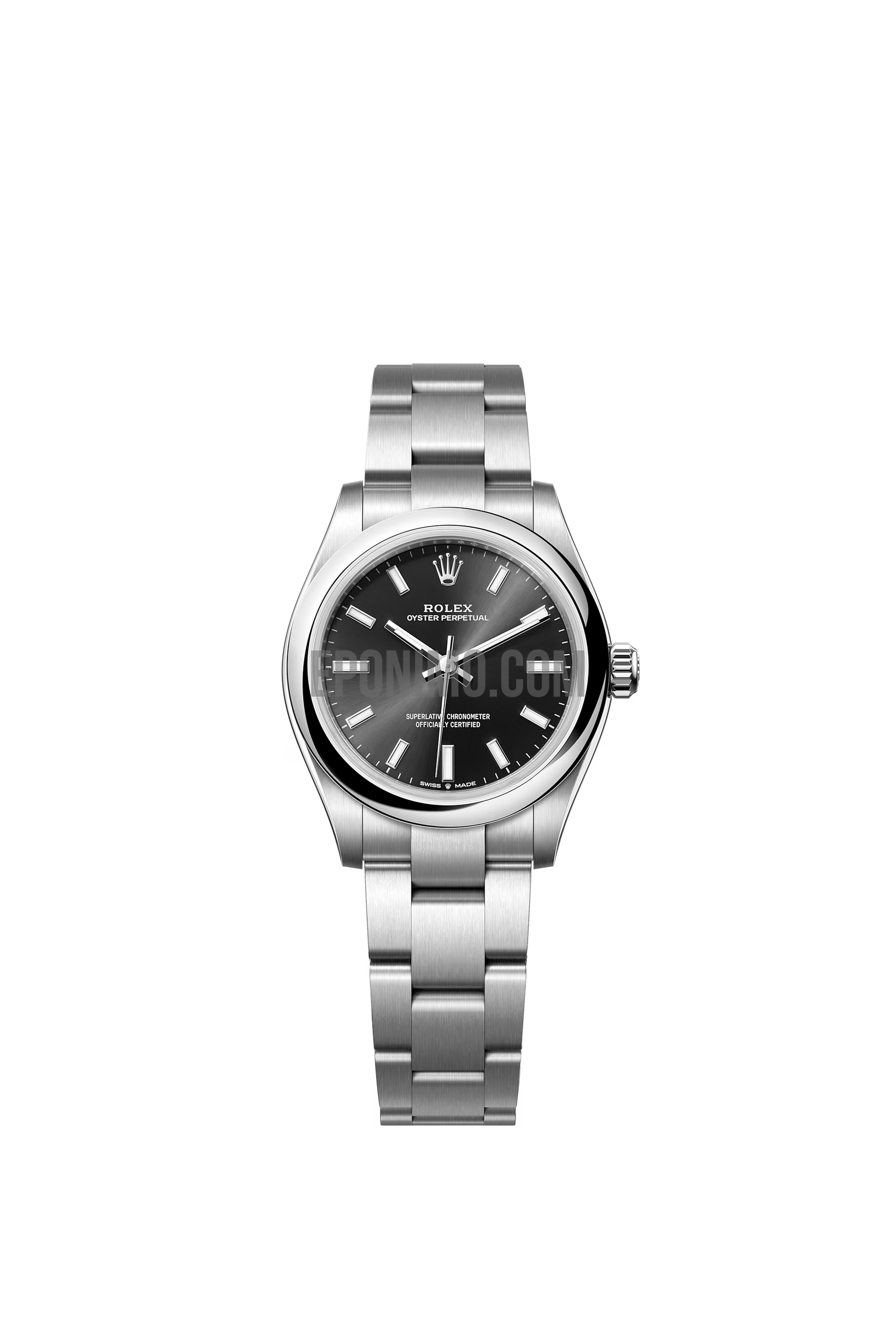 Με 31 χιλιοστά διάμετρο, γυναικείο, κατασκευασμένο εξ'ολοκλήρου από συμπαγές ανοξείδωτο ατσάλι. Φοράει αντιχαρακτικό κρύσταλλο ζαφειρίου και αυτόματο μηχανισμό. Αδιάβροχο.