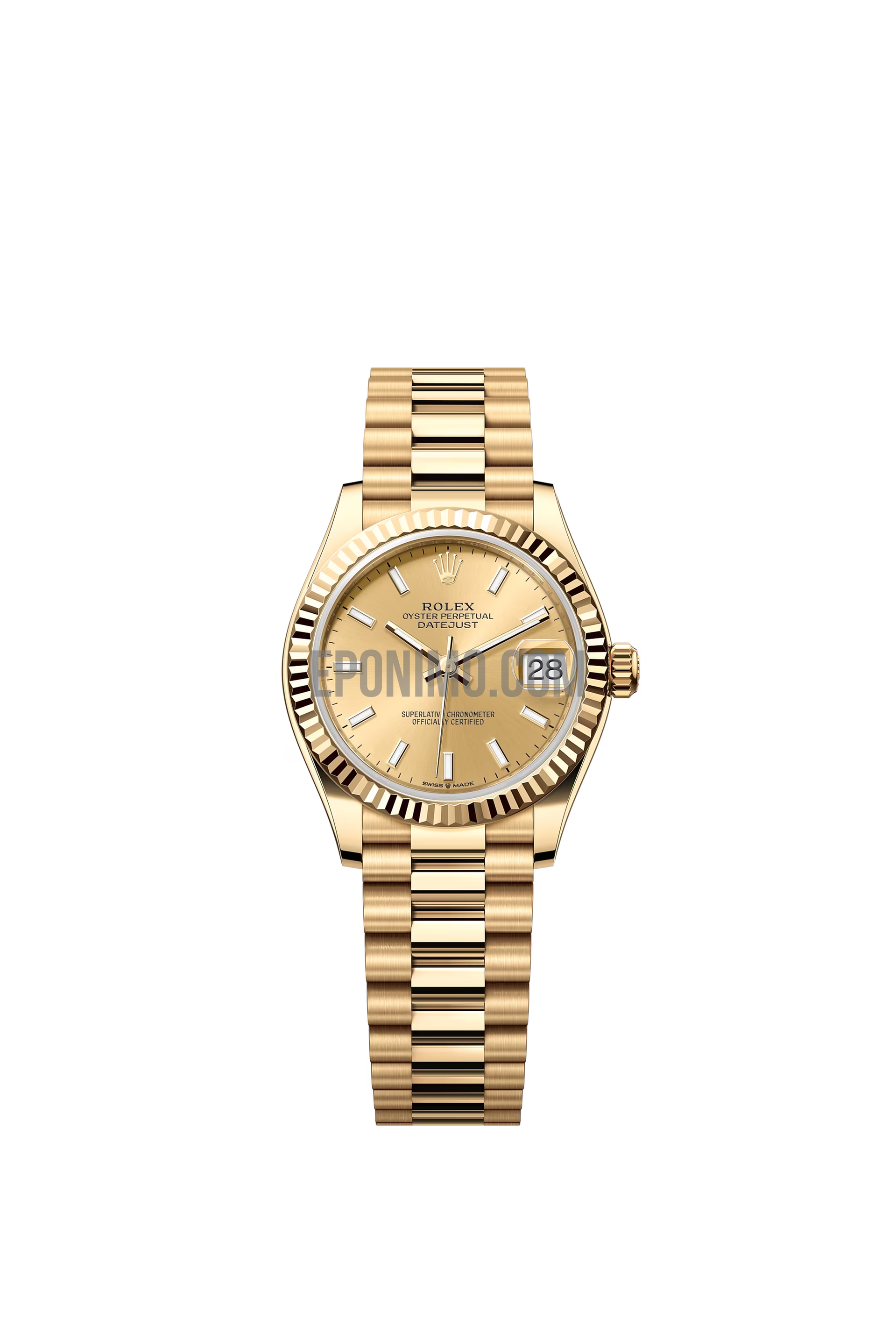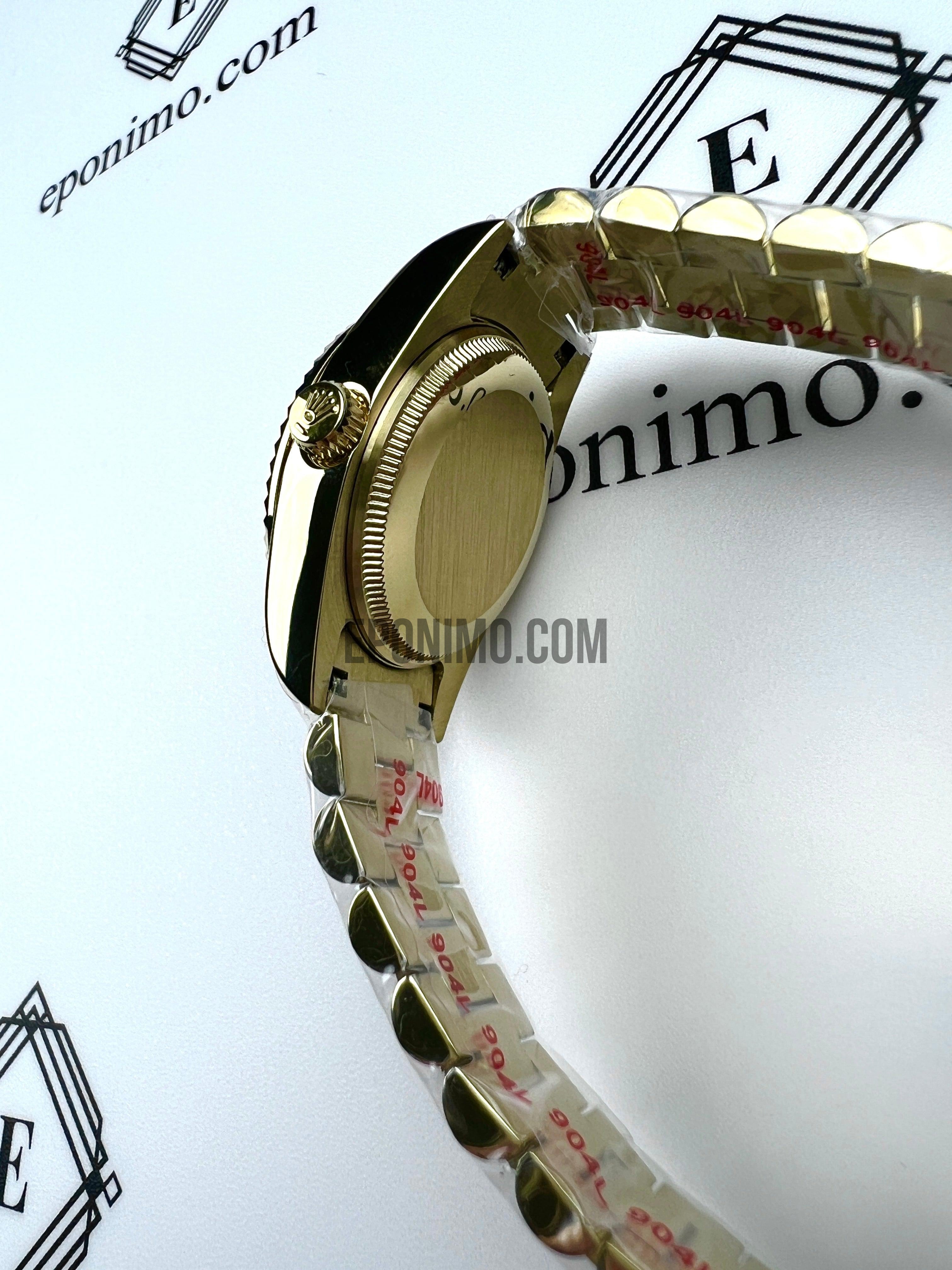 Ανοξείδωτο ατσάλι 904L, χρυσό χρώμα, αυλακωμένη (fluted bezel) |